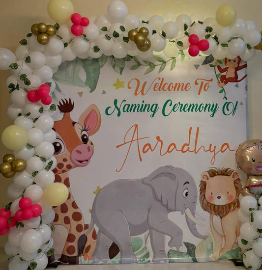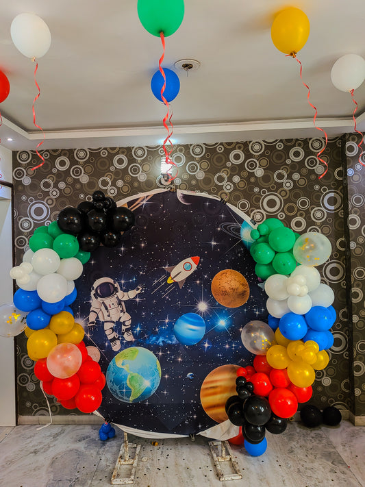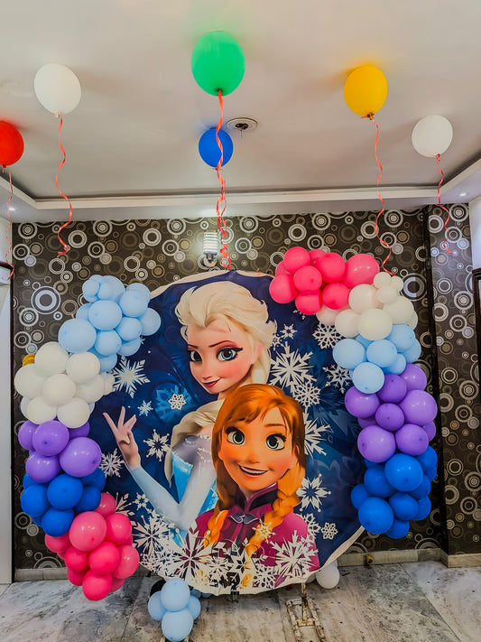 In birthday theme balloon decoration, we also use balloon garlands for a versatile appeal to decorate the party. These balloon garlands made of theme colors will give your party a mesmerizing touch. Also, we use balloons in different shapes and sizes to make it look much more attractive.