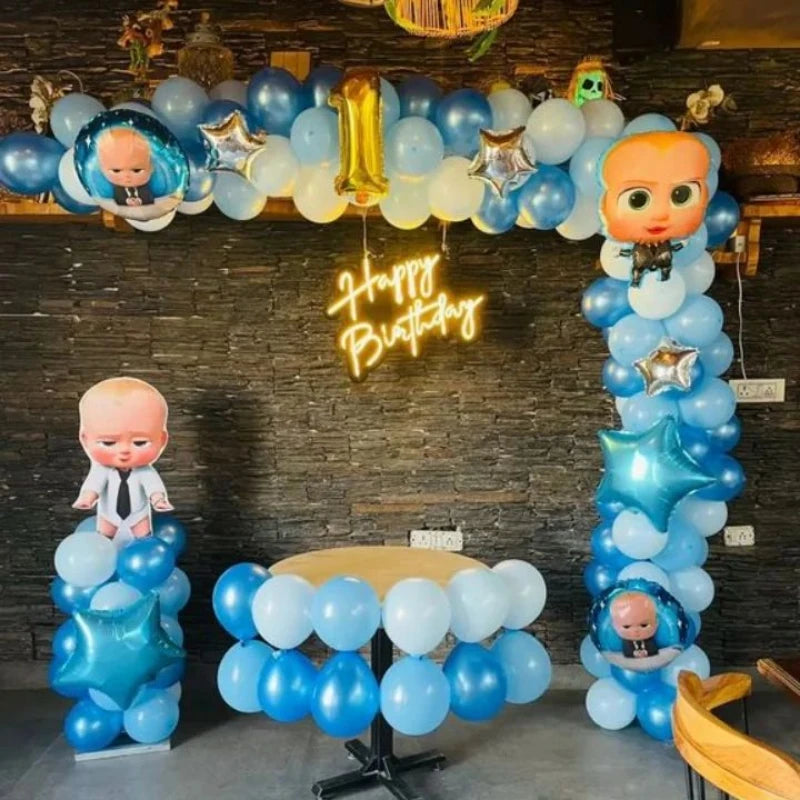 1st Birthday Boss Baby theme Birthday Balloon Decoration in Banquet or Home