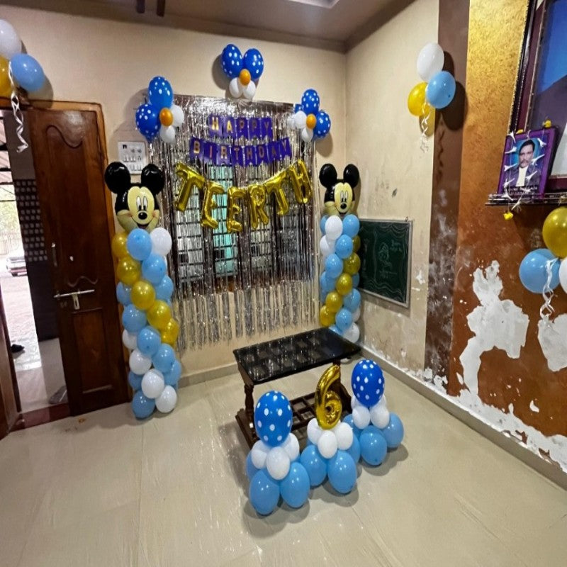 6th Birthday Balloon Decoration at home in Mickey Mouse Theme