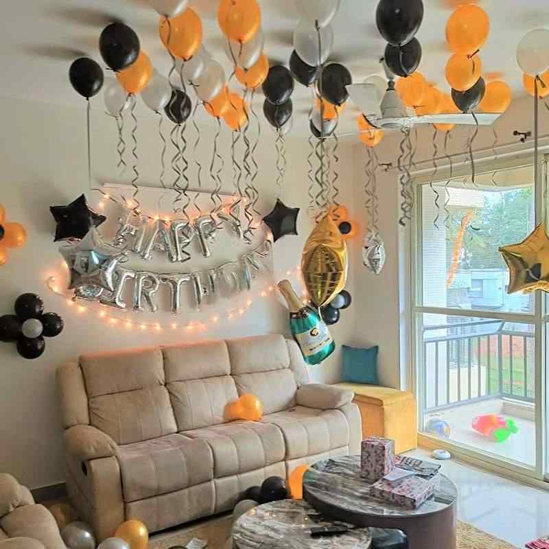 Balloon Decoration in living room for birthday Party