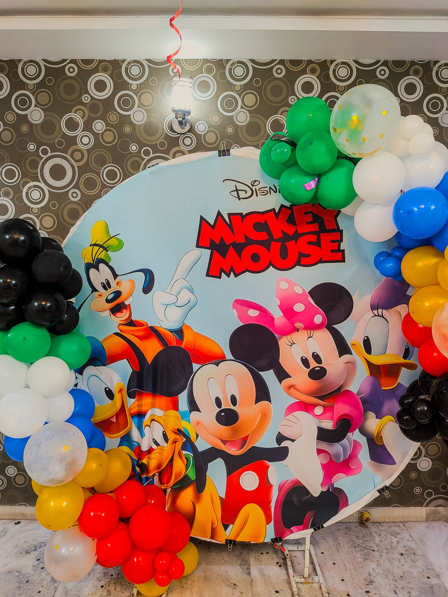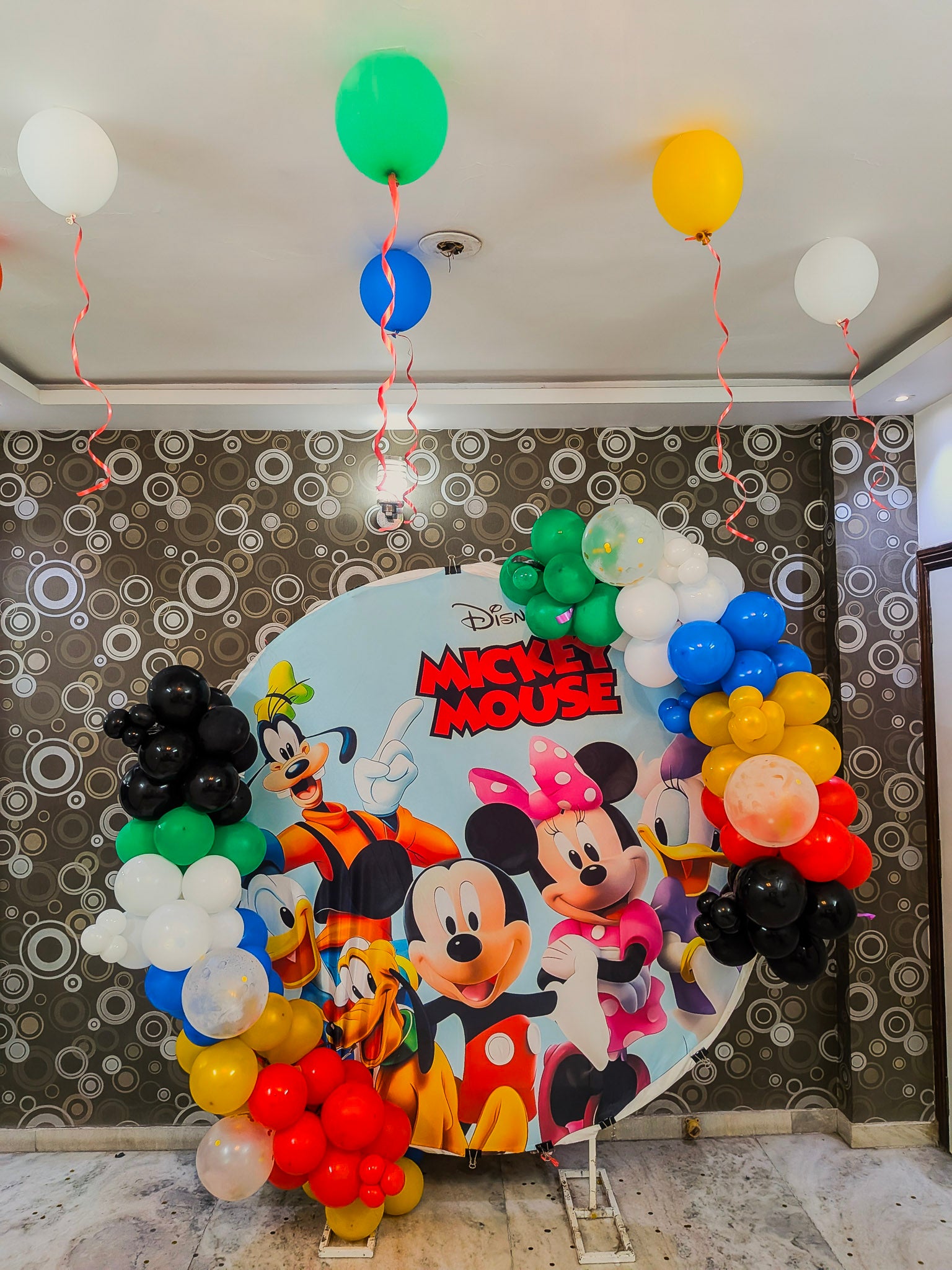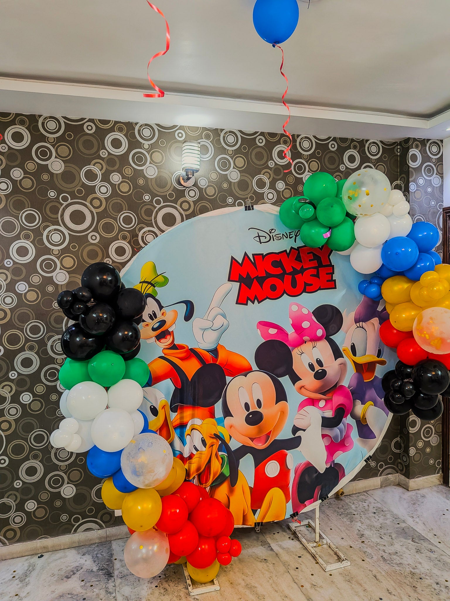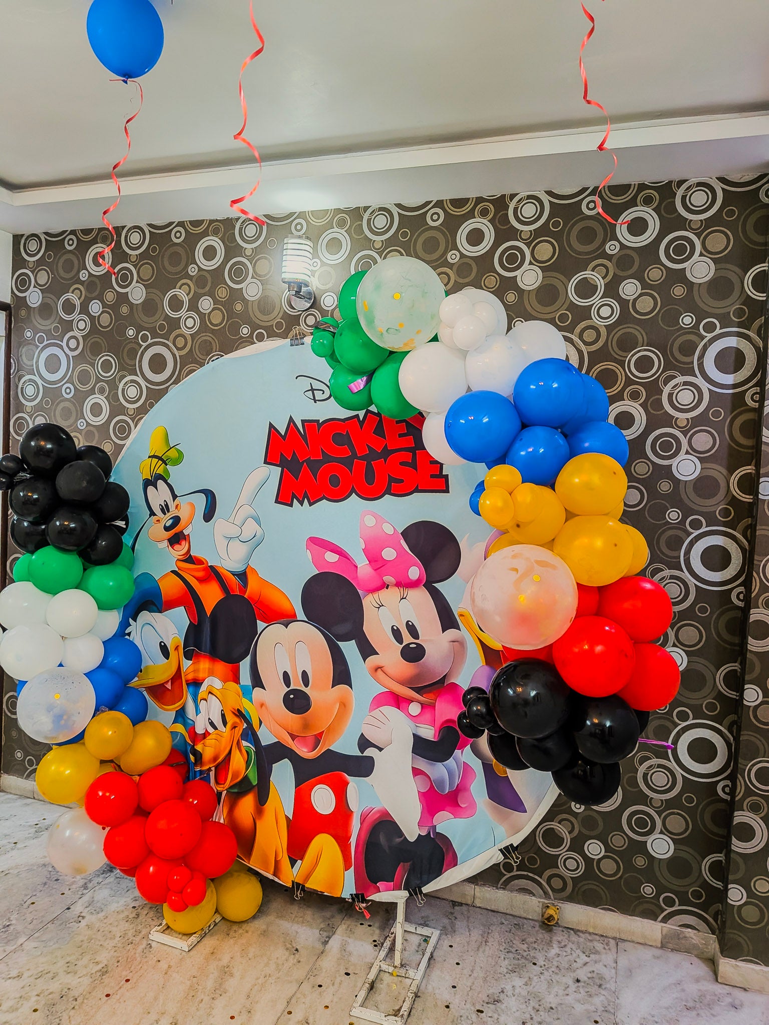 Mickey Mouse Theme Birthday Decoration with balloons.