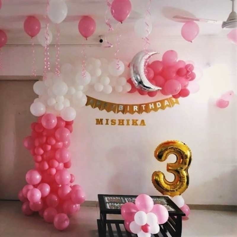 Moon Theme Birthday Decoration at Home with White Pink Balloons